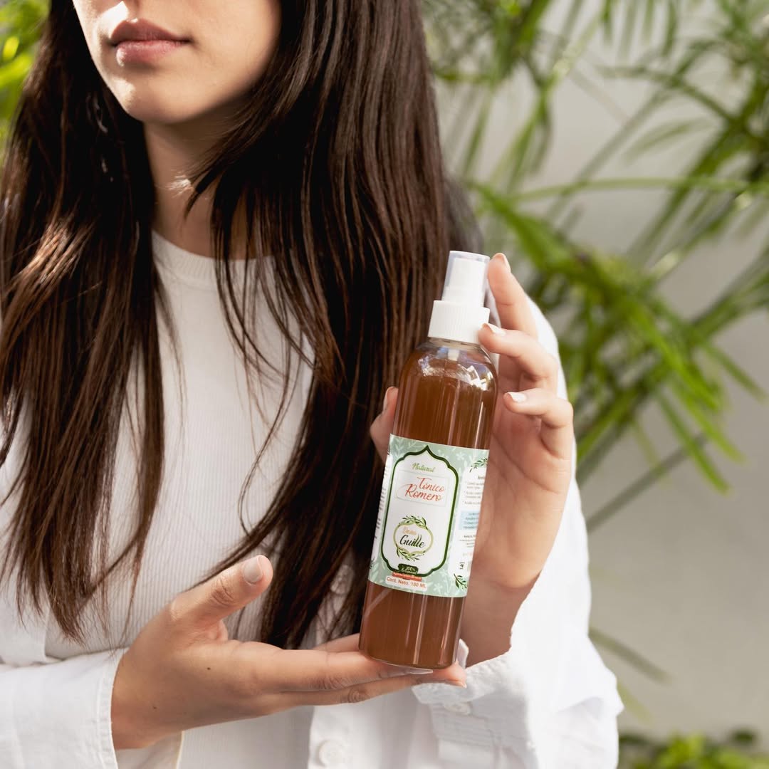 El tónico capilar D’Guille equilibra el pH, fortalece las raíces y controla la grasa gracias a su fórmula con romero, té verde y vinagre de manzana.